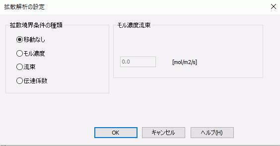 拡散物質の出入りがない場合に指定します。(拡散流束0 ) |