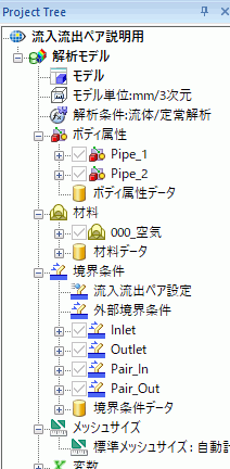 あらかじめ、流入流出ペアの流入境界条件Pair_In,流入流出ペアの流出境界条件Pair_Outがそれぞれ異なるトポロジーに設定されている前提で説明します。