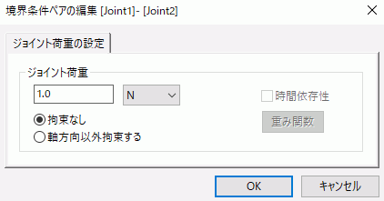 二つのジョイント荷重境界の間の荷重を有効にするためにはペア設定を行い、荷重値を設定する必要があります。