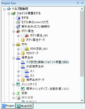 あらかじめ、ジョイント荷重境界条件JL1、JL2がそれぞれ異なるトポロジーに設定されている前提で説明します。