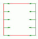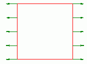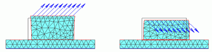 面(2次元の場合は辺)への圧力を設定します。面(あるいは辺)に対して垂直内向きに圧縮する力を 正と定義します。下の図を参考にしてください。