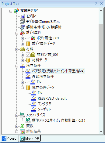 接触境界ペアの変更方法(プロジェクトツリー)