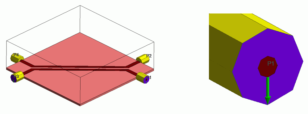 積分路の向きはポートにおける電界の向きとして使用されます。そのため、複数のポートを設定するモデルにおいて