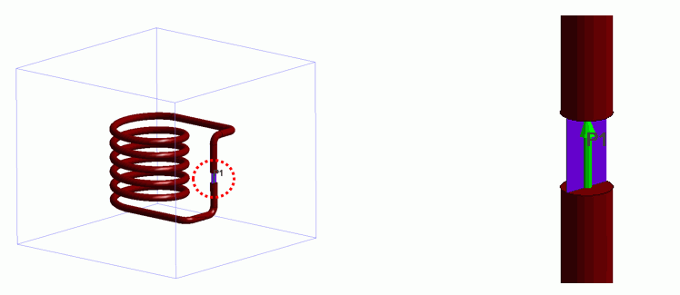 る電流により導体が電気的に励振し電磁波を放出します。このモデルはコイルを表したものですが、内部ポート