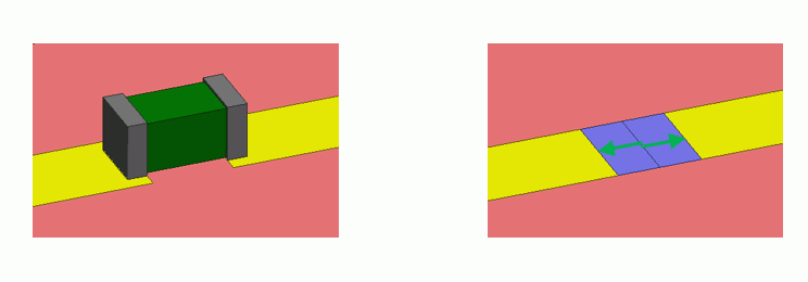 このグランドはモデル全体におけるグランドとは一般に異なります。そのため、特性を合成したいチップ部品がコンデンサ
