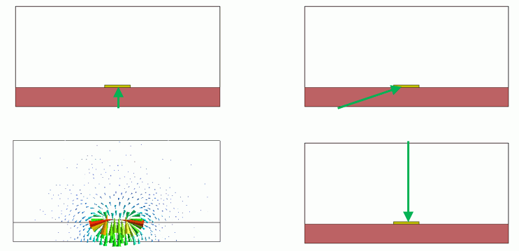 では、電界が集中する箇所であればグランドや信号線に対して垂直である必要はありません。また電極上であれ
