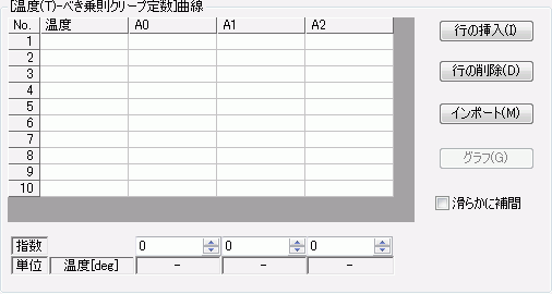 をクリックすると[温度_べき乗則クリープ定数]曲線テーブルが開きます。