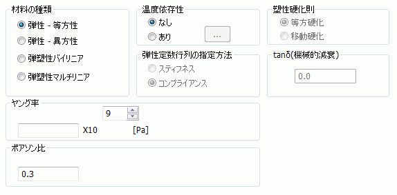 注: ヤング率の仮数部に入力できる値は0より大きい実数です。 ポアソン比の仮数部に入力できる値は0~0.5の実数です。