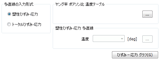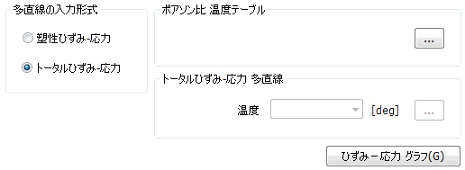 多直線の入力形式を「塑性ひずみ-応力」、「トータルひずみ-応力」から選択します。