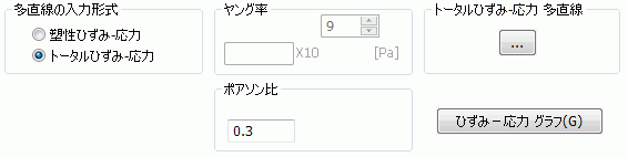 入力形式「トータルひずみ-応力」では、ポアソン比を定義し、