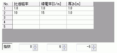 温度依存性なしで、異方性の設定が等方の場合のみ入力できます。 仮数部に入力できる値は0より大きい実数です。