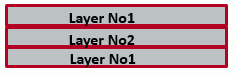 1.3次元解析でソリッドボディにつけた場合図1はソリッドボディの断面と考えててください。ソリッドボディの周囲をLayer No1、内部をLayer No2として計算します。Layer No1の厚みは、テーブルで入力した厚みを採用しますが、Layer No2の厚みは入力した値を使わず、十分厚いという近似を使って計算します。