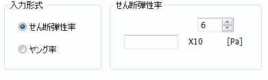 入力形式でせん断弾性率を選択した場合、せん断弾性率を入力してください。 入力形式でヤング率を選択した場合、ヤング率を入力してください。