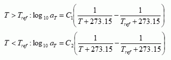 温度によって緩和時間が変化する度合いをシフトファクターaTと呼び、 これの常用対数値を入力します。 例えば、log10aT = -1のとき、緩和時間は1/10になります。 テクニカルノート粘弾性材料の応力解析にも説明がありますので参照してください。