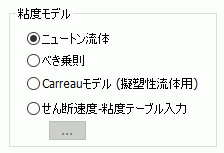 べき乗則、Carreauモデル、せん断速度-粘度テーブル入力は非ニュートン流体の解析機能です。