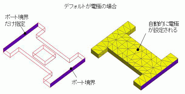 そこで、外部境界条件を電気壁や熱伝達・対流境界や輻射境界に変更することで、それらを自動的に設定させるようにできます。