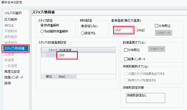 ステップ/熱荷重 タブにて基準温度を設定します。