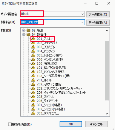 設定方法は「ボディ属性/材料定数の設定方法」を参照してください。