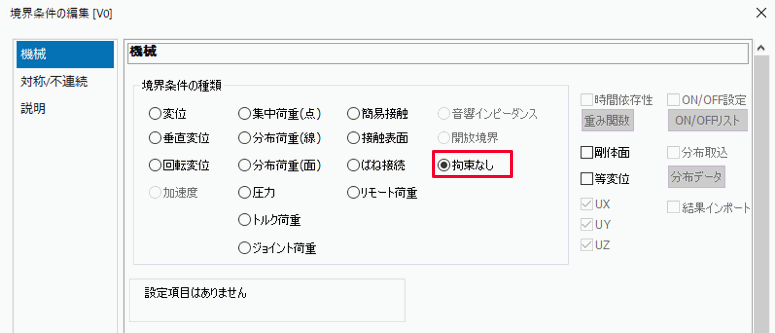 応力解析ではシートボディの境界条件を「拘束なし」に設定します。