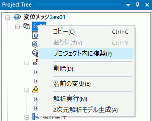 プロジェクトツリーで解析モデルを右クリックし、[プロジェクト内に複製]を選択します。
