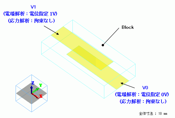 応力解析で変位メッシュを得た後に境界条件の追加はできないので、電場解析で必要となる境界条件を予め設定しておく必要があります。
