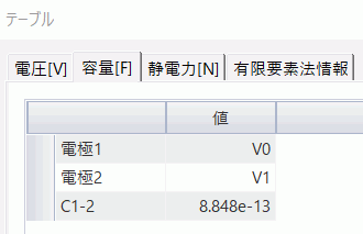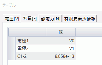 変位前の静電容量の解析結果は、[解析結果]タブの、