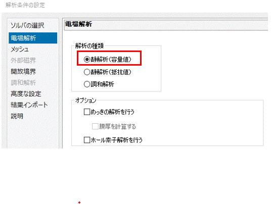 電場解析の設定は以下のように行います。