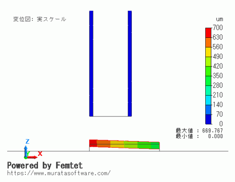 解析タイプ「応力解析」で、円盤の移動を確認します。