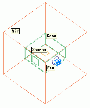 ケース内に置かれた発熱体をファンにより冷却する解析例を示します。