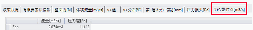 結果テーブルでファンの動作点を確認することができます。