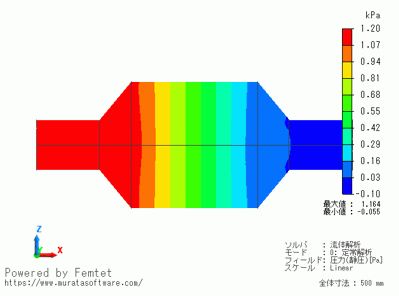 流入側から流出側に向かって、多孔質部で大きく圧力が降下しているのが確認できます。