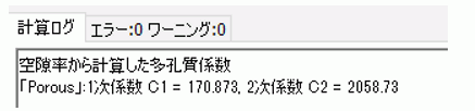 多孔質体の設定で、「空隙率から計算」を設定している場合、空隙率からErgunの式で算出した多孔質係数を確認することができます。