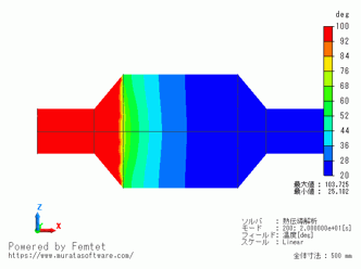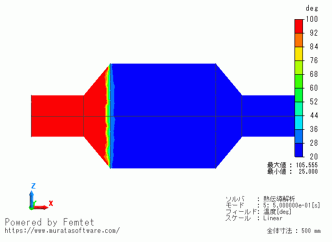 0.1[s]という短い時間で、流入側のパイプが100[deg]になっていることが分かります。