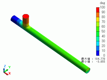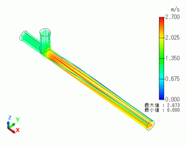 異なる温度の水をスタティックミキサーで混合する解析です。