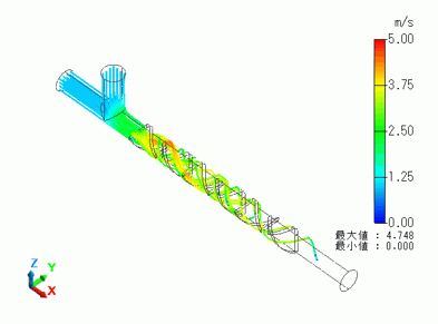 ホーム / 例題集 / 連成解析 / 熱流体解析[Bernoulli/Watt] / 例題17 スタティックミキサーの解析