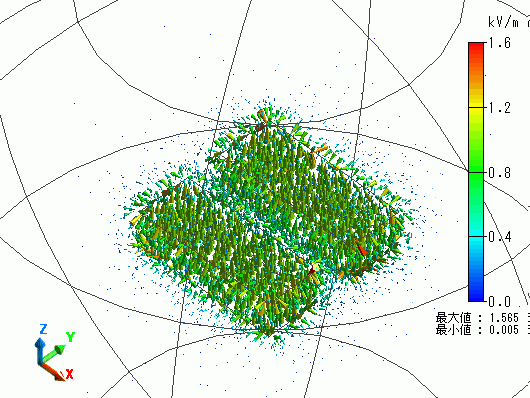 各電極間の静電容量、電界分布、等電位面を結果として見ることができます。