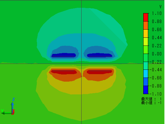 例題1では電位差を有する2枚の平板から構成されたコンデンサの電場解析例を示しましたが、