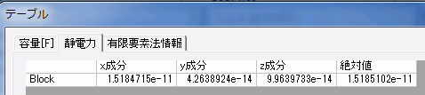 アルミナブロックに働く静電力の解析結果は、[解析結果]タブの、