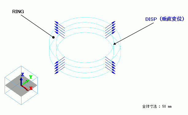 このリングの内側の面トポロジに垂直変位の境界条件を設定しています。