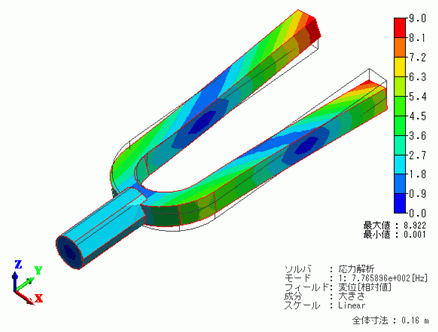 ホーム / 例題集 / 応力解析[Galileo] / 例題13 音叉の共振解析