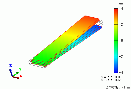 変位図を示します。コンター図は変位のZ成分を示してます。