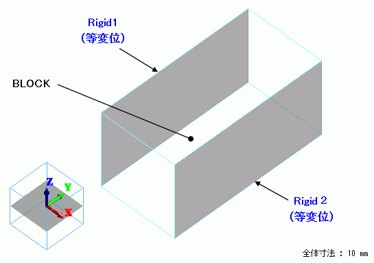 直方体の表面のうち2面に等変位の境界条件を設定しています。
