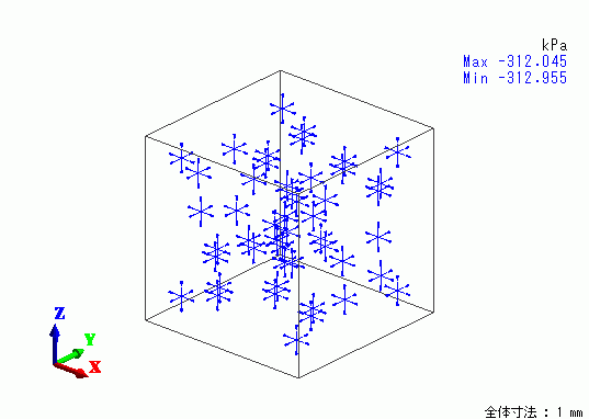 正六面体のボディに温度依存性のある異方性線膨張係数をもつ材料を設定し、さらに外部境界条件には変位の