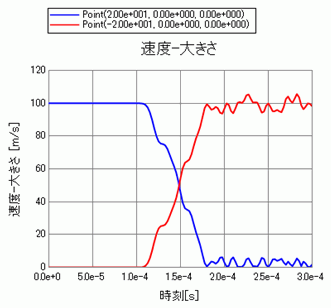 上のグラフから時刻1.0e-4[sec]から2.0e-4[sec]にかけて速度が