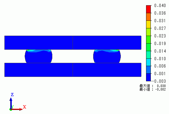 右側のはんだボディの右上の点で特に塑性ひずみが集中していることが分かります。