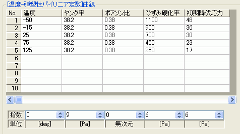 材料の種類: 弾塑性バイリニア 塑性硬化則: 移動硬化※ 材料定数: 下表参照