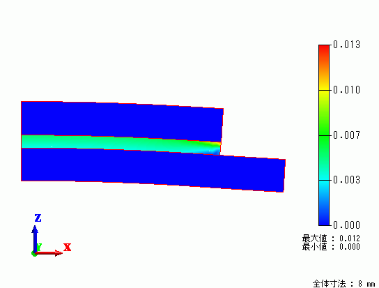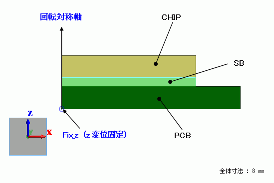 線膨張係数などが異なる材料(シリコンとガラエポ)をはんだで接合した構造の熱荷重解析をします。