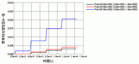 クリープひずみとは異なり累積相当塑性ひずみは温度変化時にのみ増加していることが分かります。