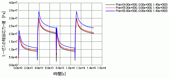 はんだとCHIP界面におけるミーゼスの相当応力の変化の様子を以下のグラフに示します。