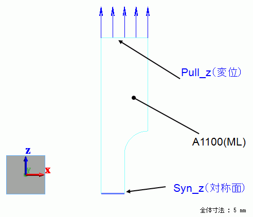 材料の種類:弾塑性マルチリニア ヤング率: 69×109[Pa] ポアソン比: 0.3